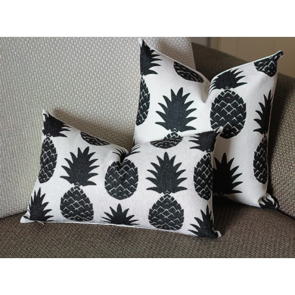 *Front Only:  100% cotton Linen black pineapple lumbar Pillow Cover. pattern Italy digital printing linen Fabric